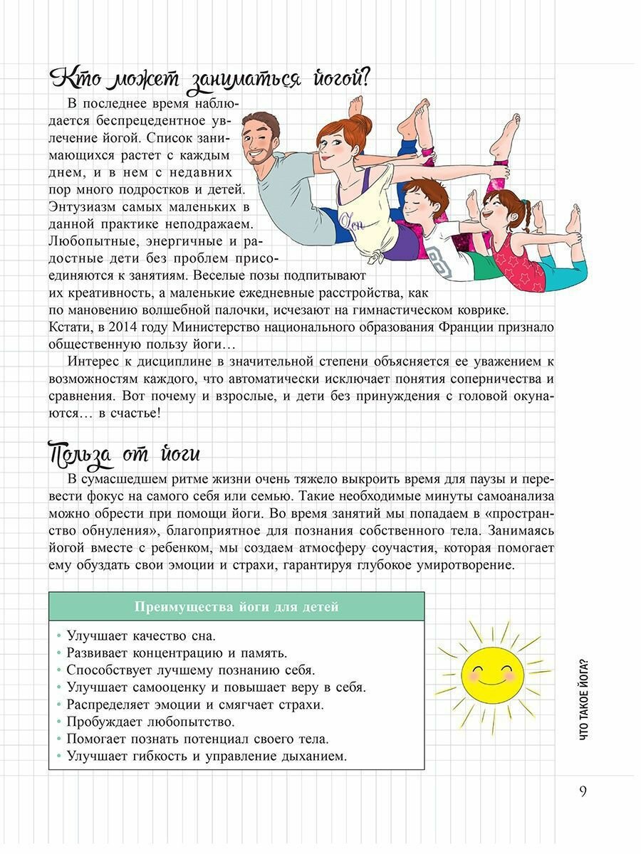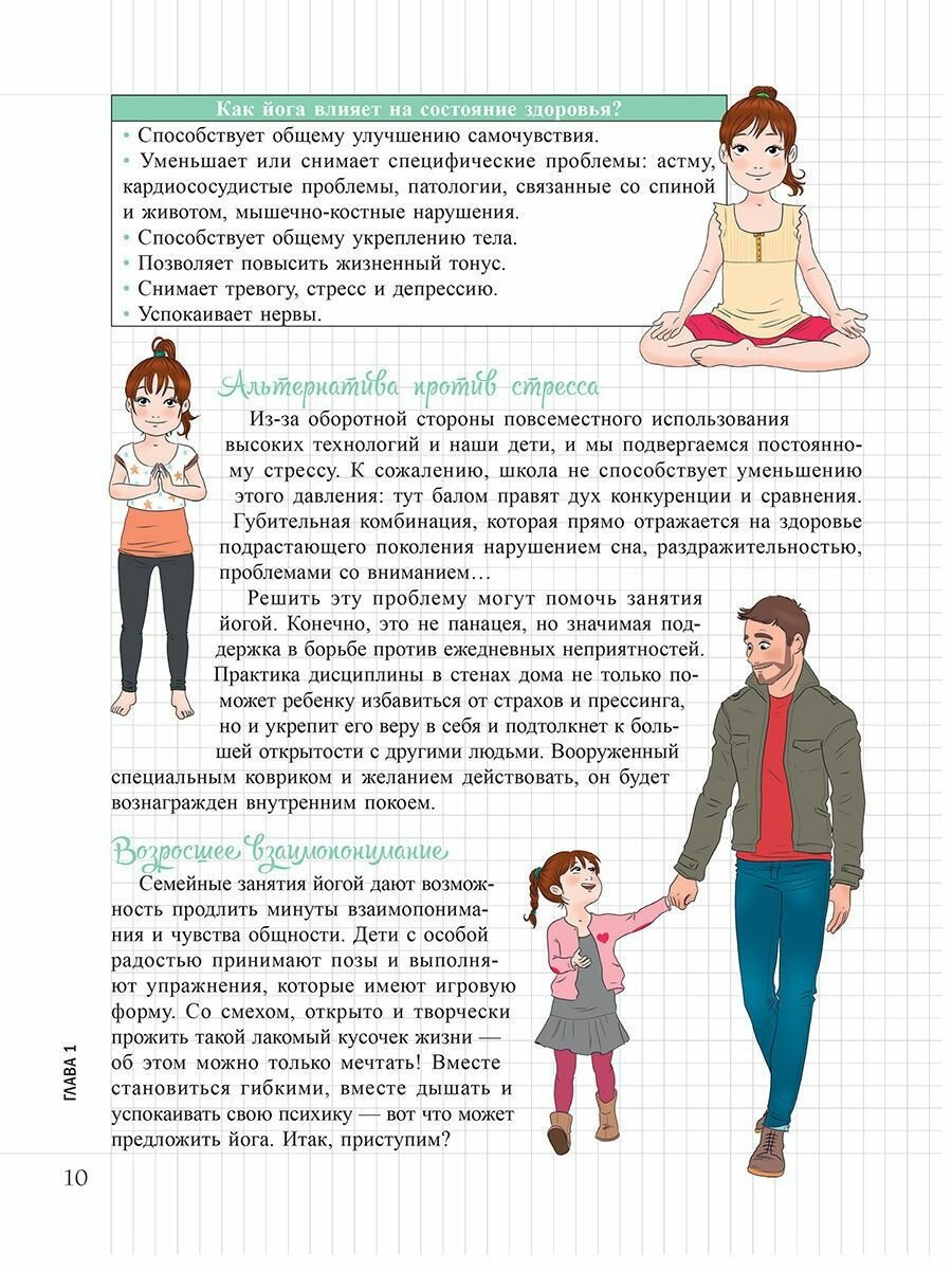 - Проникнуться духом йоги, следуя 10 советам в таких вопросах, как питание, сон, общение, доброжелательность… Йога внесет разнообразие в жизнь всей семьи.