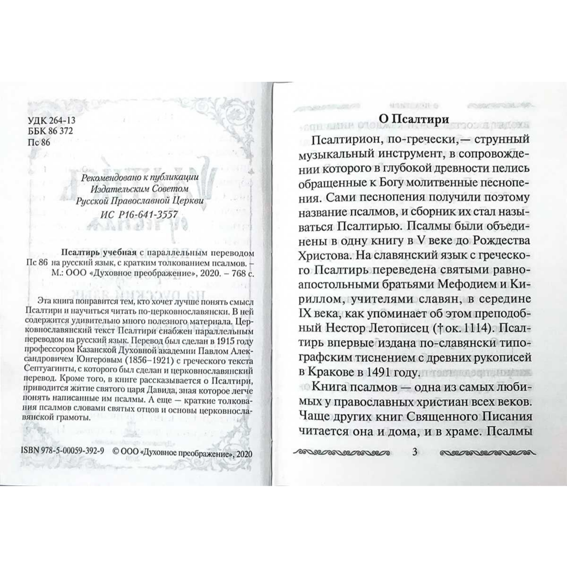 Псалтирь учебная с параллельным переводом на русский язык с кратким толкованием псалмов (Зубова Е.А.); Духовное преображение, 2022