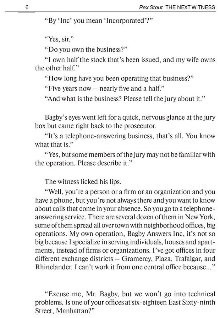 Книга организована по принципу билингвы: произведения опубликованы на языке оригинала с параллельным переводом на русский язык. Гедонист и домосед Ниро Вульф, небывалое дело, вынужден изменить своей привычке вести расследования из собственного кабинета. Убита девушка-телефонистка, и прямо из зала суда детектив вместе с помощником Арчи Гудвином отправляется на поиски преступника, чтобы не только изобличить злодея, но и самому избежать подозрений в причастности к жестокому убийству.