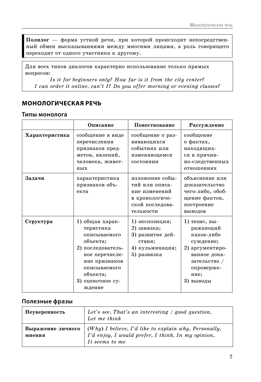 Пособие содержит теоретические сведения в схемах и таблицах по всем темам, проверяемым на ЕГЭ по английскому языку. После каждого раздела приводятся тренировочные задания разных типов с ответами. Наглядное и доступное изложение материала позволит быстро найти нужную информацию, устранить пробелы в знаниях и в кратчайшие сроки повторить большой объём информации.Издание окажет помощь старшеклассникам при подготовке к ЕГЭ по английскому языку, урокам, различным формам текущего и промежуточного контроля.