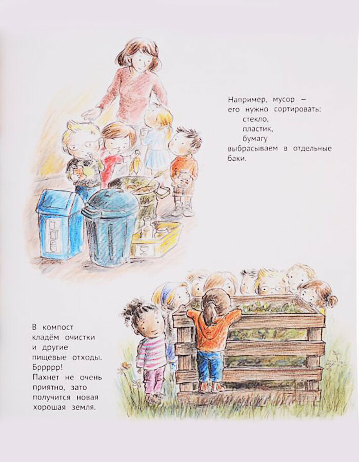 Трогательная и местами забавная книга познакомит юных читателей с понятием экологически ответственного поведения и научит простым действиям для приобретения необходимых навыков.