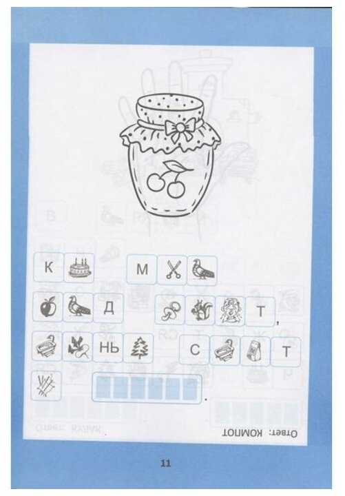 Что интересного. На каждой странице книги есть свои ребусы, которые частично состоят из букв и слогов, а частично из картинок. Зашифрована загадка. Нужно правильно прочитав задание её отгадать. По 1-2 задачки в день для детей достаточно и очень удобно.