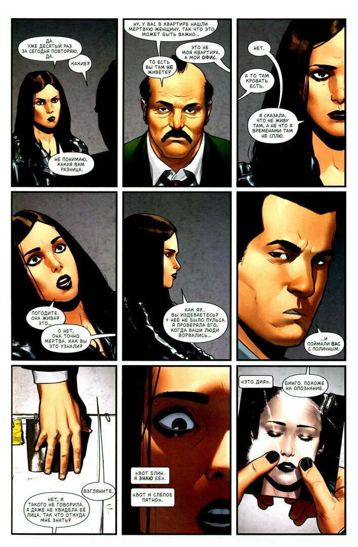Нисколько не умаляю достижений Брайна Бендиса в его ране Джессики Джонс, ведь он ни только придумал нового нетипичного для Марвел персонажа, но и еще написал отличный криминальный детектив с нотками нео-нуара. Поэтому на продолжение серии от нового автора по началу смотрел скептически, но всё оказалось очень даже хорошо. Келли Томпсон постаралась сохранить основу оригинала, но и при этом добавила серии нечто новое. Прежде всего в сюжете стало заметно больше иронии, динамичных ситуаций и повседневных сцен, что заметно освежает привычную формулу. Ничего удивительного, учитывая прошлую работу Томпосн в том же комиксе про Кейт Бишоп. Тем не менее в корне это всё тот же детектив с интригой, поиском улик и циничной сыщицей во главе повествования, хоть и обреченного настроения здесь больше не наблюдается. Особенно хороши моменты с дедуктивным «взором» Джессики, когда она подмечает детали внешности собеседников на предмет поиска информации. В формате комикса такое смотрится невероятно уместно и стильно. Да и сама по себе история действительно интересна и удерживает внимание читателя до самого финала.