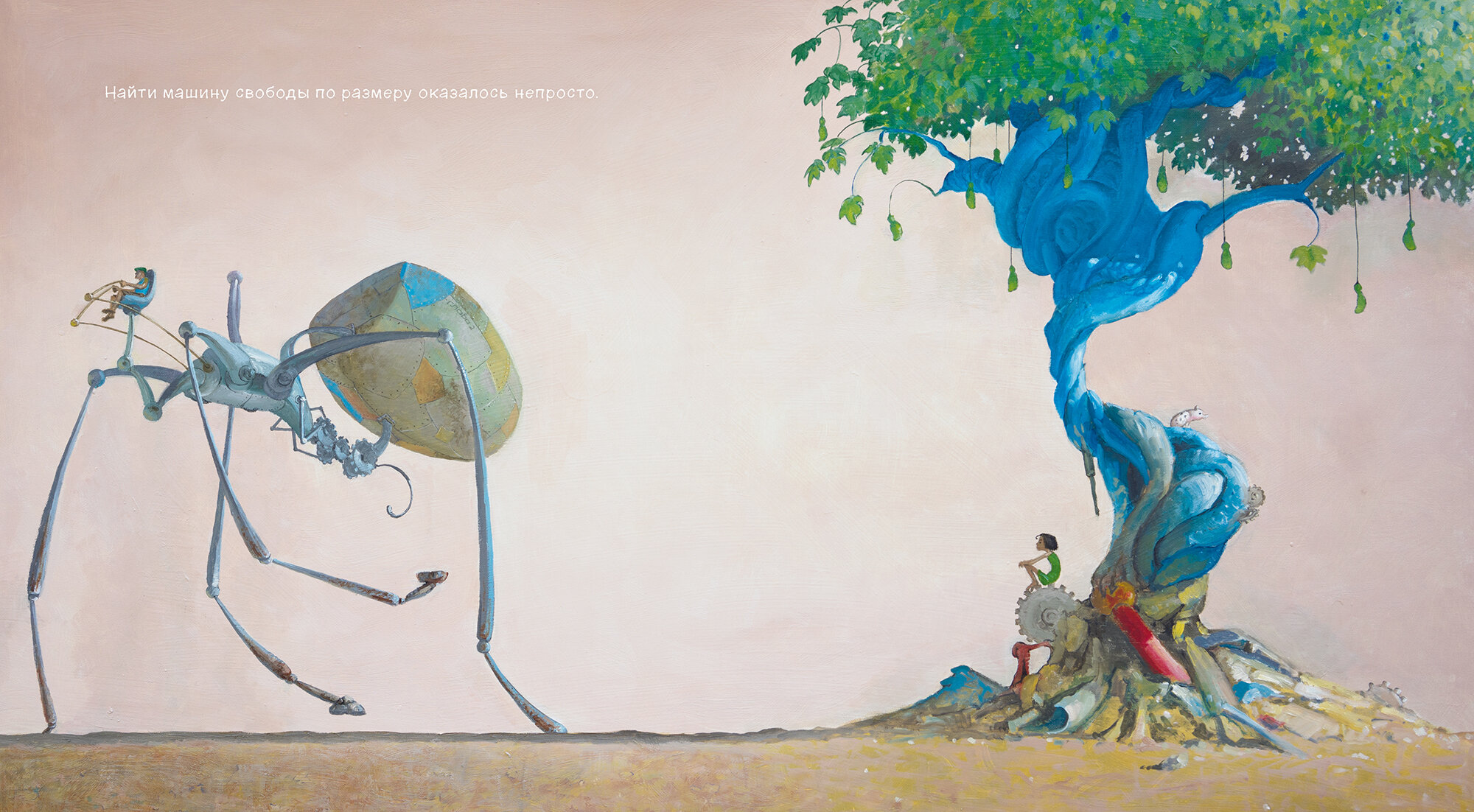 И снова всего несколько предложений. И снова этого более чем достаточно: пустыня и фантастические механизмы, путешествия в неизведанные места, – эпичность и глубина истории разворачиваются на иллюстрациях Мэтта Оттли, а деликатный текст Кирли Сондерс лишь направляет мысль читателя.