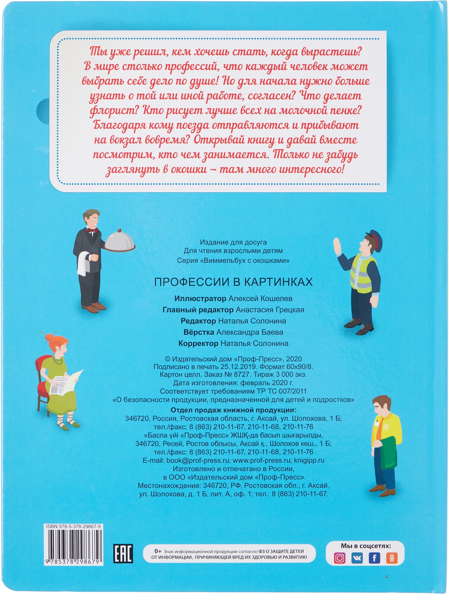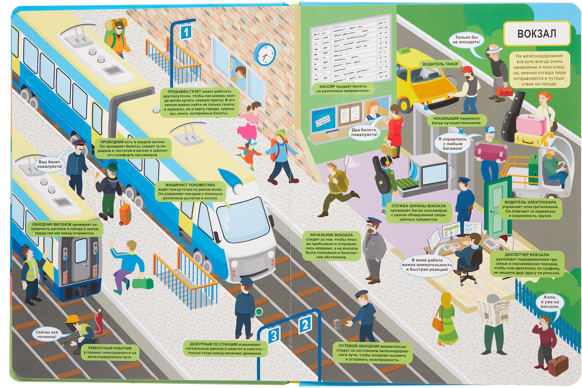 Ты уже решил, кем хочешь стать, когда вырастешь? В мире столько профессий, что каждый человек может выбрать себе дело по душе! Но для начала нужно больше узнать о той или иной работе, согласен? Что делает флорист? Кто рисует лучше всех на молочной пенке? Благодаря кому поезда отправляются и прибывают на вокзал вовремя? Открывай книгу и давай вместе посмотрим, кто чем занимается. Только не забудь заглянуть в окошки-там много интересного!