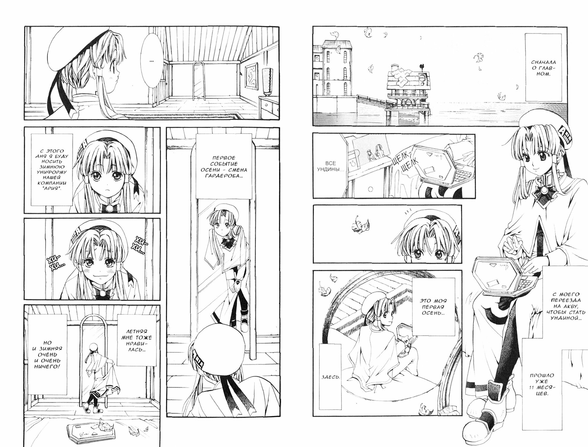 Невоспитательный момент. Акари в первом томе стала подмастерьем одновременно с Айкой. Хотя Айка много времени уже тренировалась и гребла хорошо. А Акари только научилась грести правильно. Где логика? Где справедливость? Специально написала под вторым томом, чтобы не проспойлерить для тех, кто покупает первый том. Просто неприятный момент во всей это песни торжества счастья в водном мире.