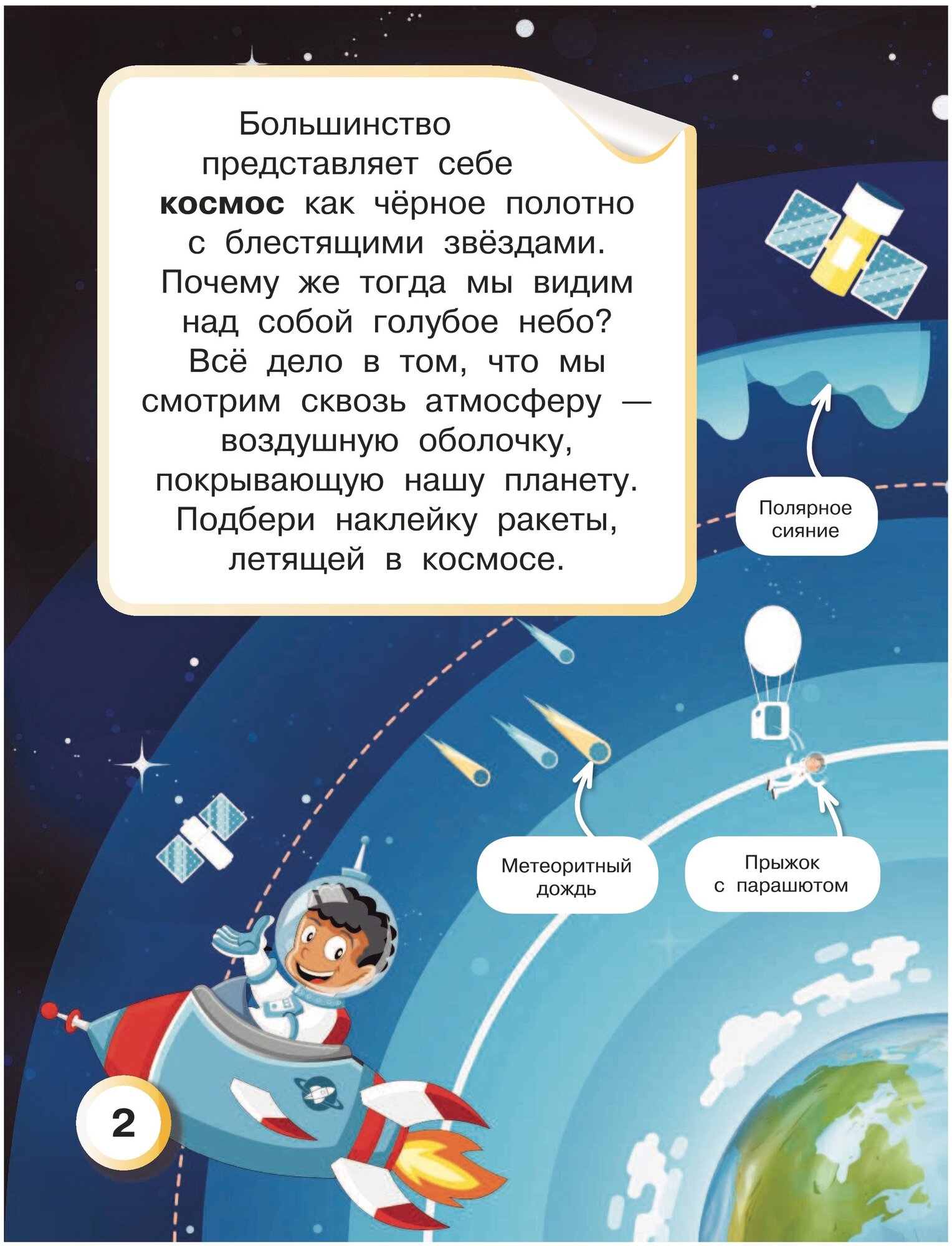 Читаем книгу, выполняем задания, подбираем наклейки и узнаём о том, что есть в космосе, и как это всё устроено.