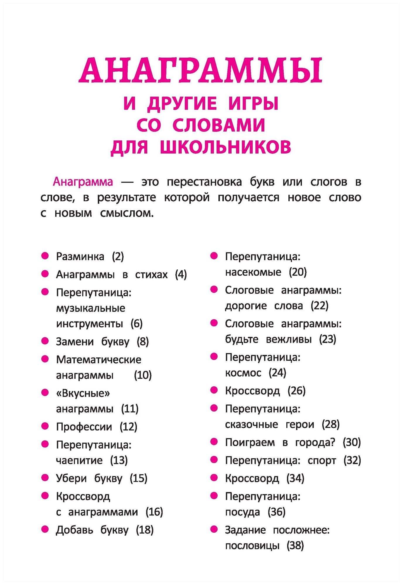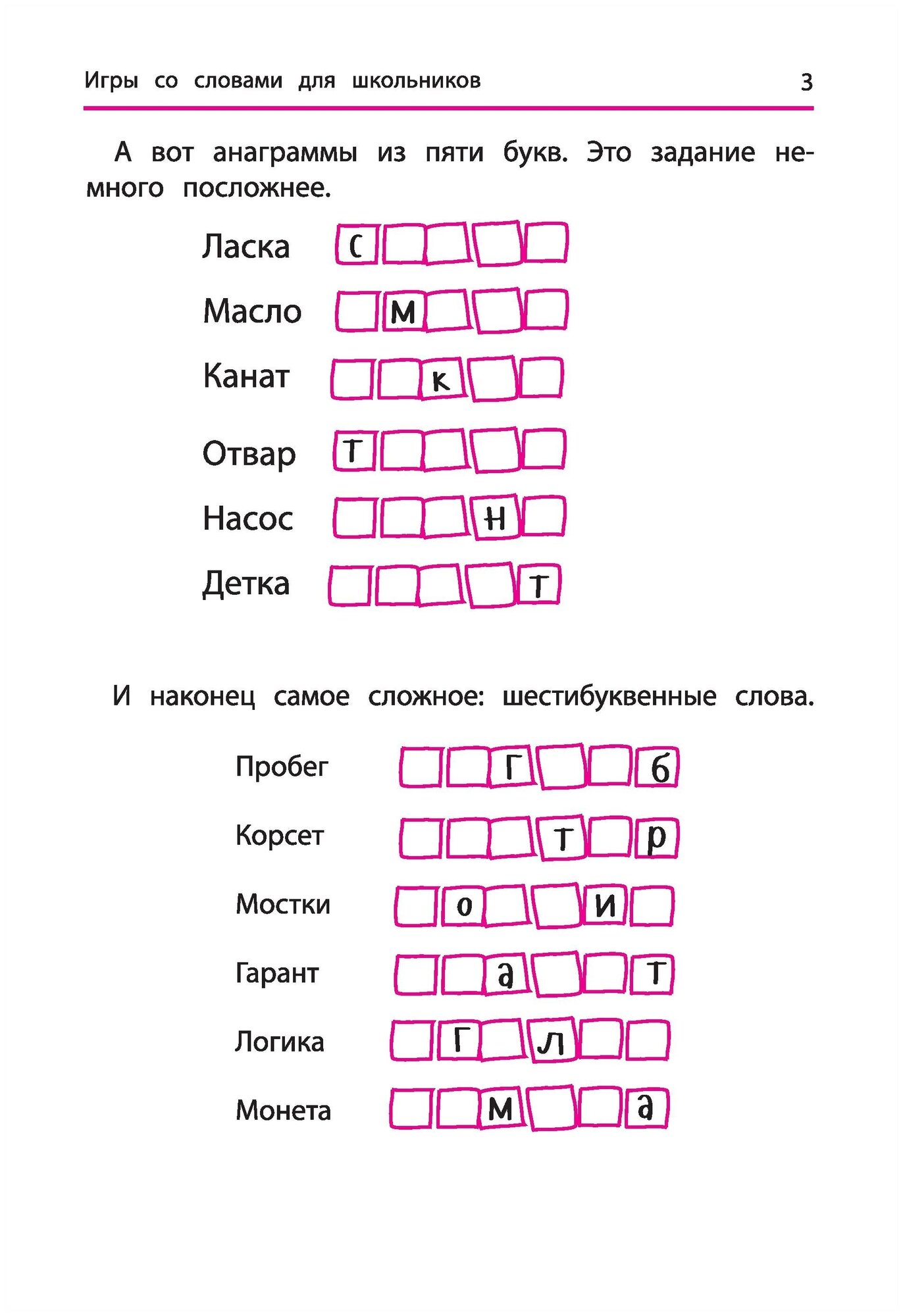Наряду с разгадыванием кроссвордов и ребусов большой интерес у детей вызывают анаграммы (словесные головоломки, которые основаны на перестановке букв в слове). В книге представлены творческие и занимательные задания различной сложности, решая которые школьники разовьют интеллект, внимание и наблюдательность, расширят свой словарный запас, ощутят красочность живого русского языка.