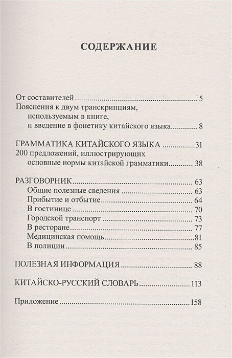 После слов автора идёт погружение в фонетику. Рассказывается про систему транскрипции, даётся подробное описание каждого китайского звука и таблица перевода китайских слов на кириллицу.