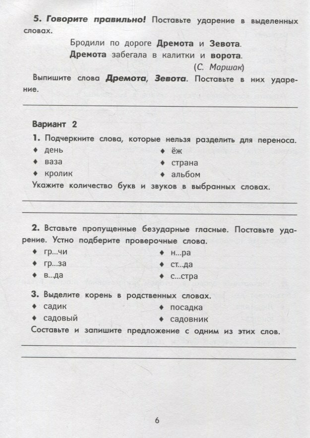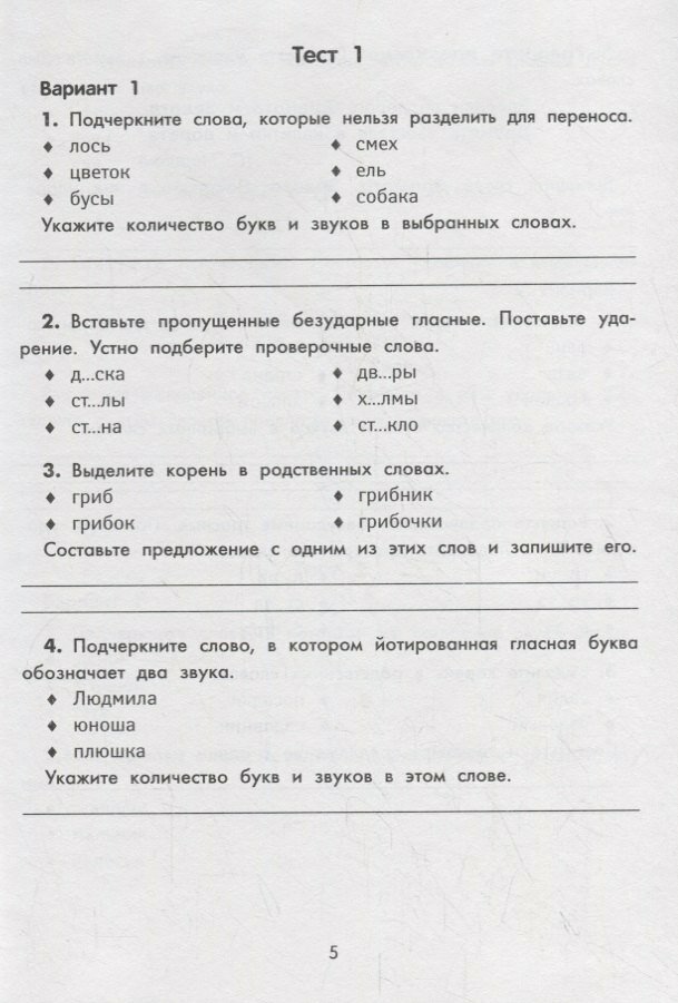 Кроме традиционных тестовых заданий, в сборник включены блоки заданий «Орфограммы в тексте». Это связано с современными требованиями к заданиям ВПР и олимпиад: учащимся предлагается найти в тексте самые разные орфограммы в соответствии с изученным материалом. Раздел «Орфограммы в тексте» будет способствовать развитию орфографической зоркости учащихся. Его можно использовать в классе по вариантам, а также при выполнении домашних заданий для закрепления изученного материала.