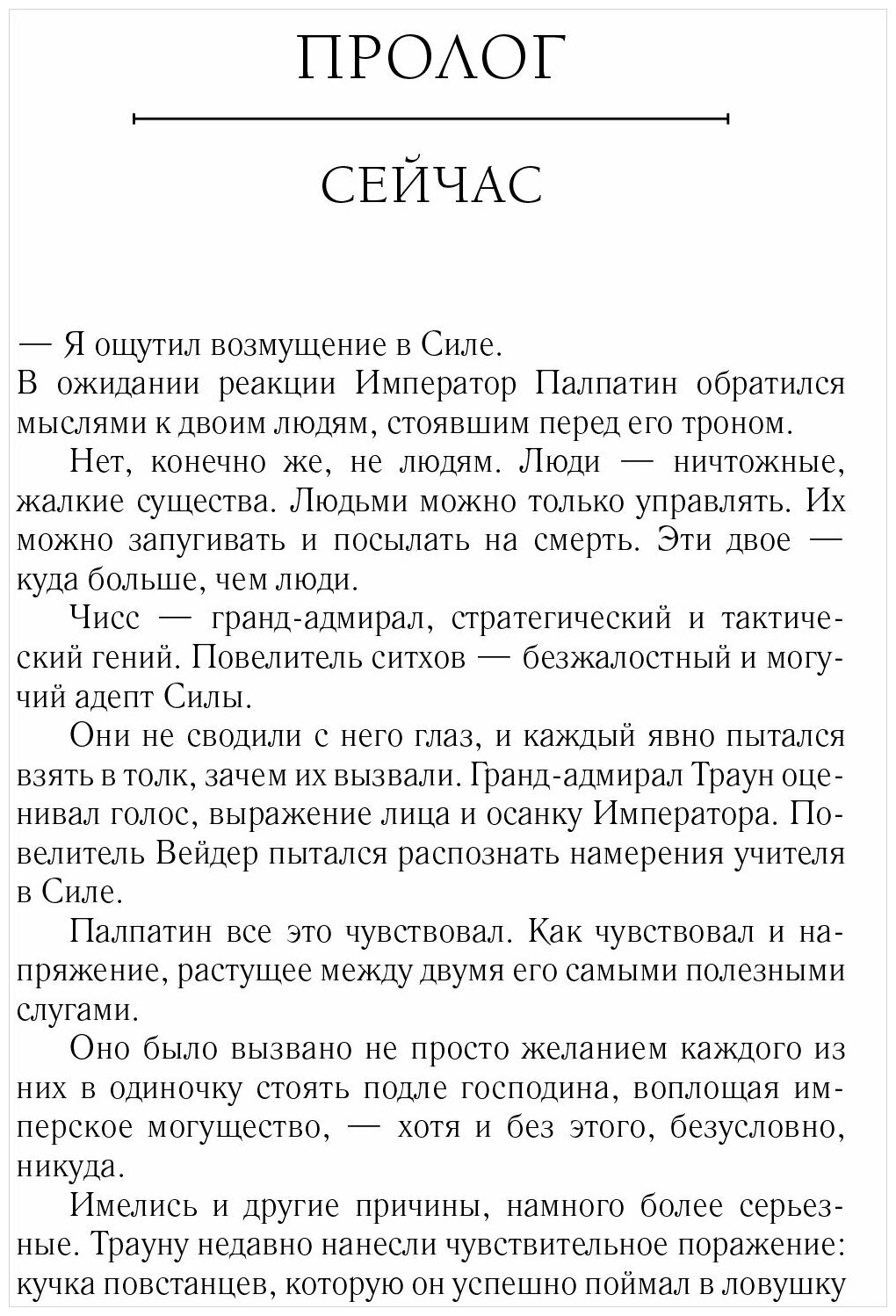 Мне понравилось, как закручен сюжет. В Звездных войнах все обычно линейно и, будем честными, довольно предсказуемо. А тут действие развивается в двух временных линиях и множество загадок. Вейдер и Траун - классный дуэт героев! Каждый диалог читать приятно.