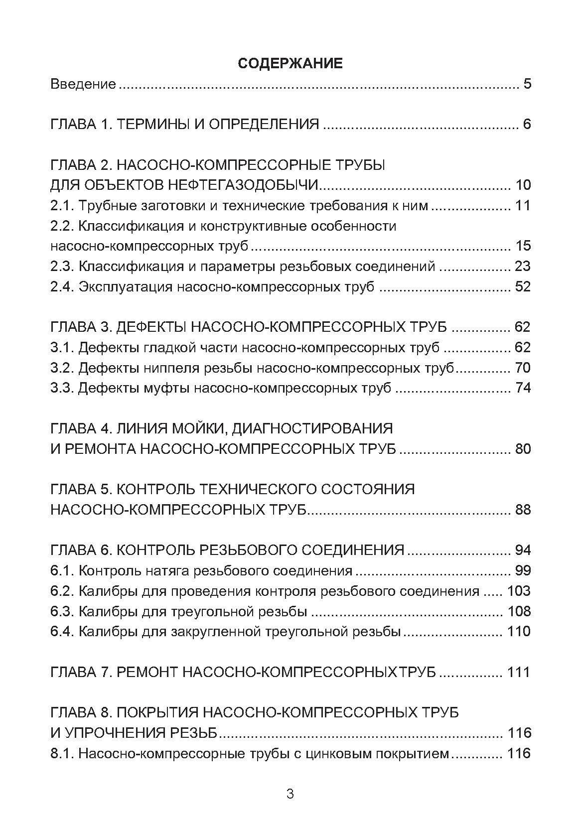Приведены конструктивные особенности отечественных и зарубежных насосно-компрессорных труб и их резьбовых соединений со ссылками на нормативно-техническую документацию. Описаны дефекты, возникающие в период эксплуатации. Рассмотрен технологический процесс ремонта труб и контроль технического состояния резьбовых соединений. Дана информация о покрытиях и методах упрочнения.