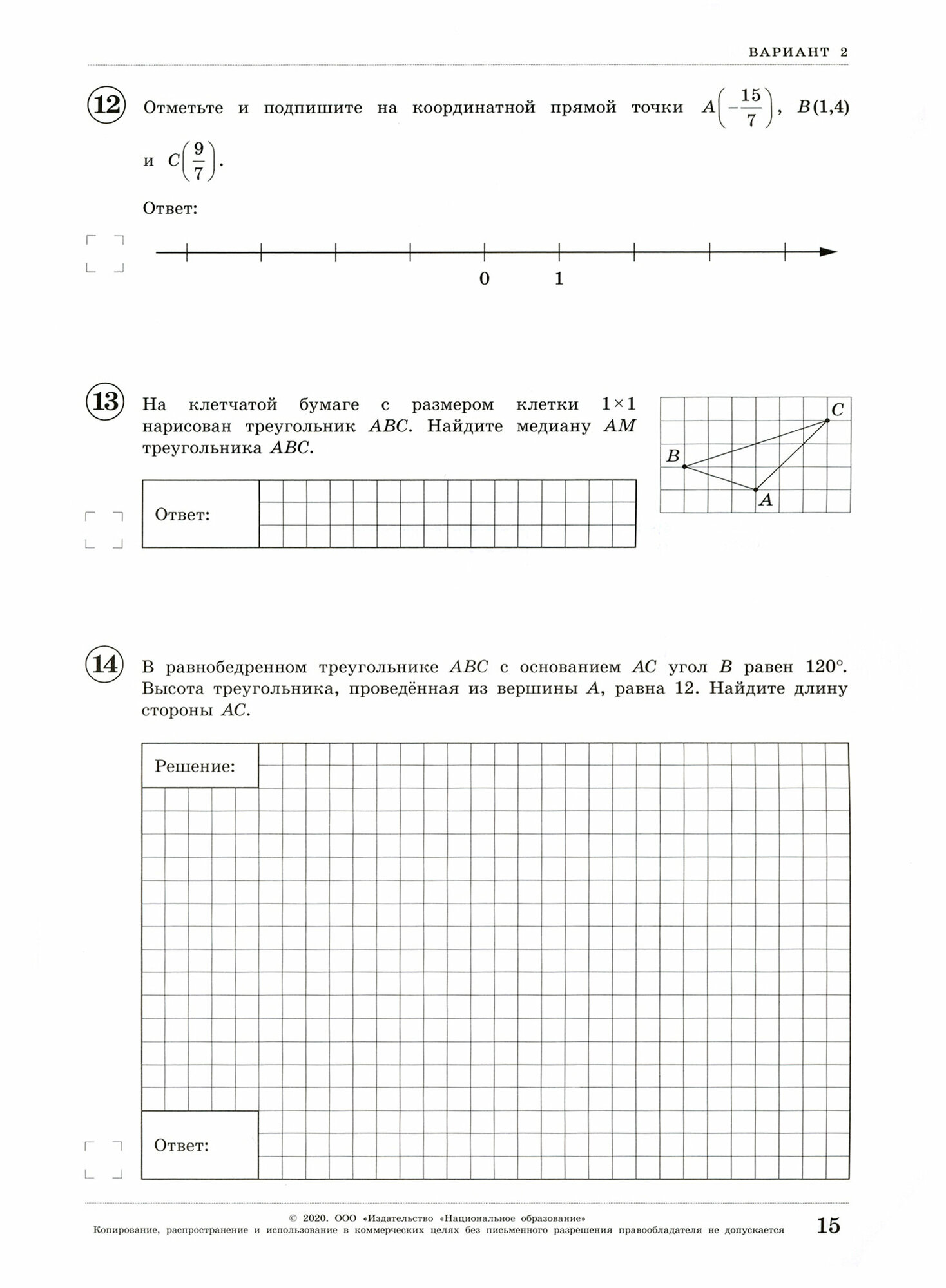 ВПР 2020 // Математика, 7 класс // Вариант #12, Часть 1 // Решение // Ответы // Критерии оценивания