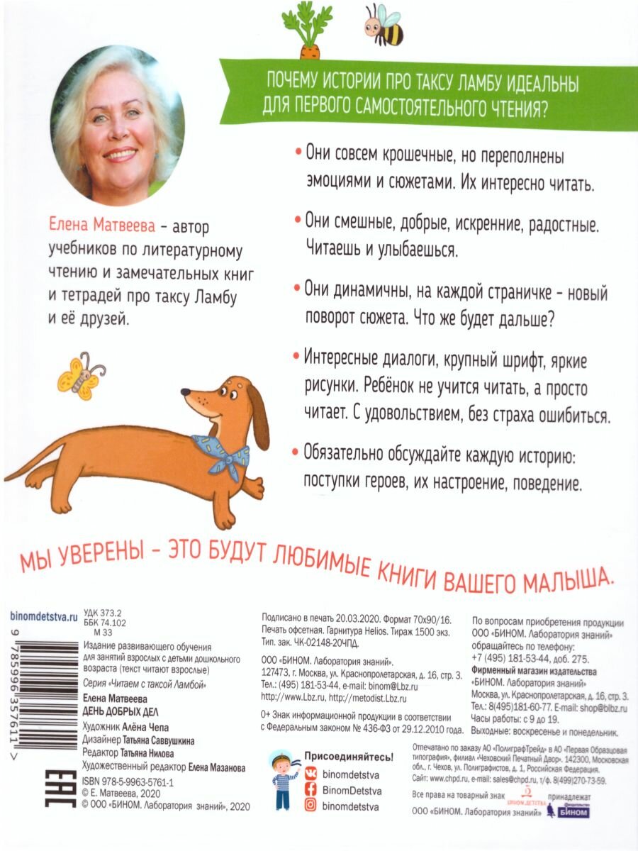 День добрых дел. Книжка-картинка для первого чтения (Матвеева Елена Ивановна); Бином Детства, 2023