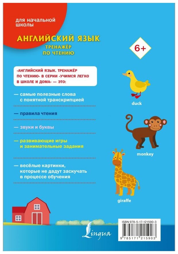 Тренажёр по чтению поможет вашему ребенку сделать первые шаги в изучении английского языка. Правила чтения, забавные картинки, несложные слова с русской транскрипцией, занимательные игры и головоломки сделают процесс обучения приятным и простым.