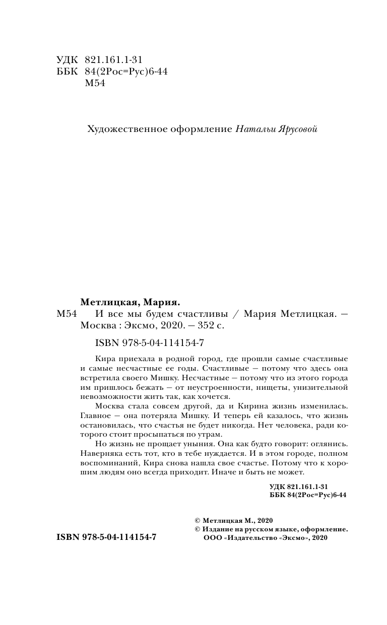 Книга: И все мы будем счастливы (Мария Метлицкая); Эксмо, Редакция 1, 2020