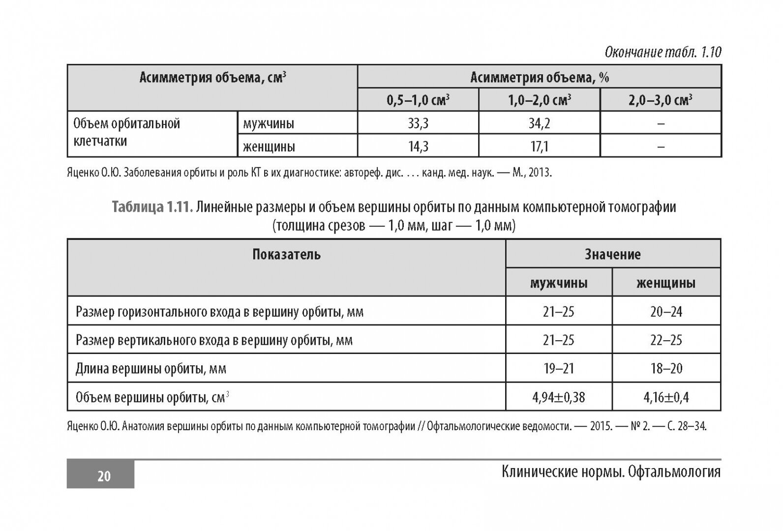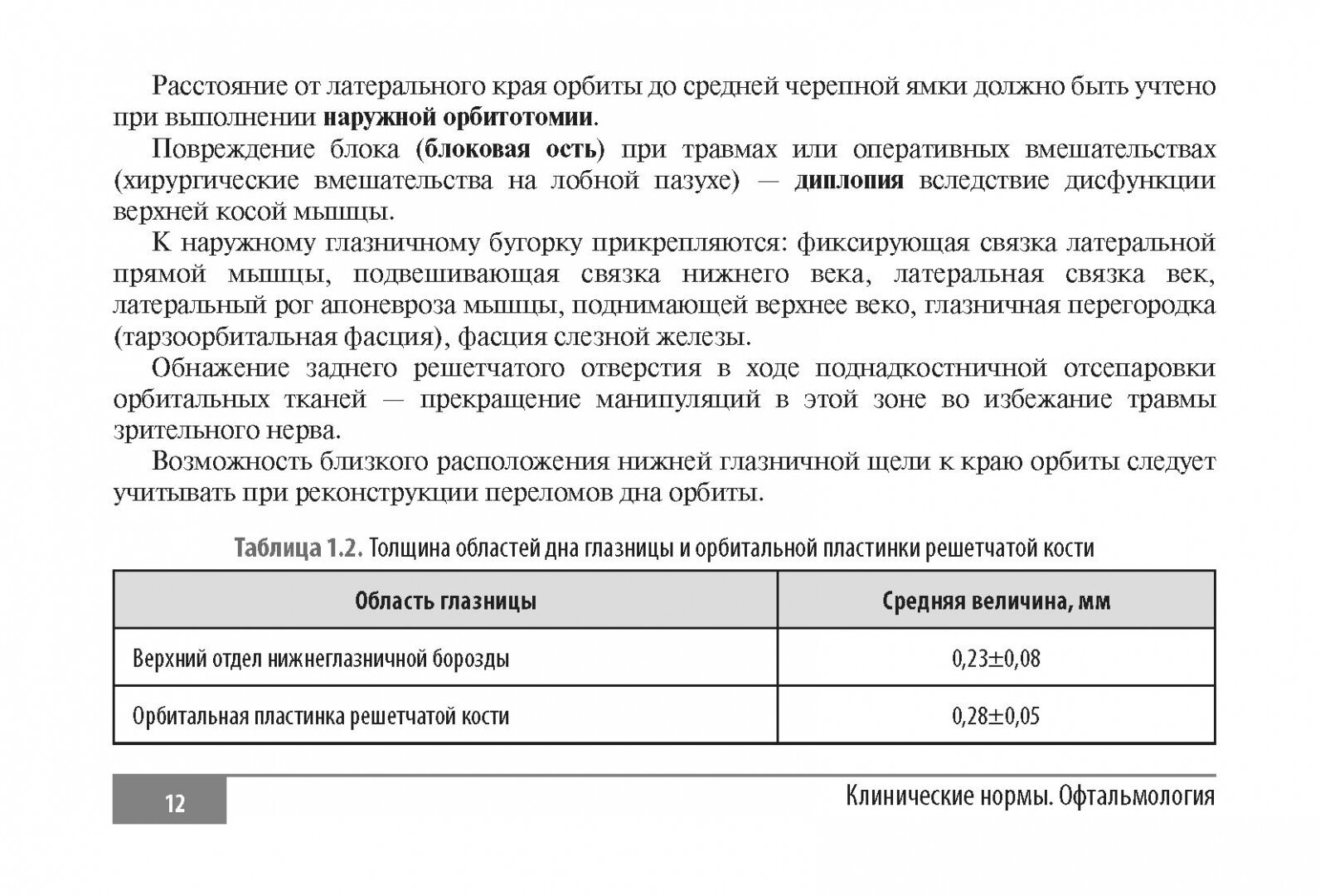 В справочнике отражены современные сведения о клинических нормах в офтальмологии. Представлены нормативные параметры и характеристики орбиты, глазного яблока и вспомогательного аппарата глаза, под- робно описаны эмбриогенез, нормальное развитие, макро- и микроскопическое строение, функции рого- вицы, хрусталика, сосудистой оболочки, сетчатки, зрительного нерва, орбиты и вспомогательного аппарата глаза.
