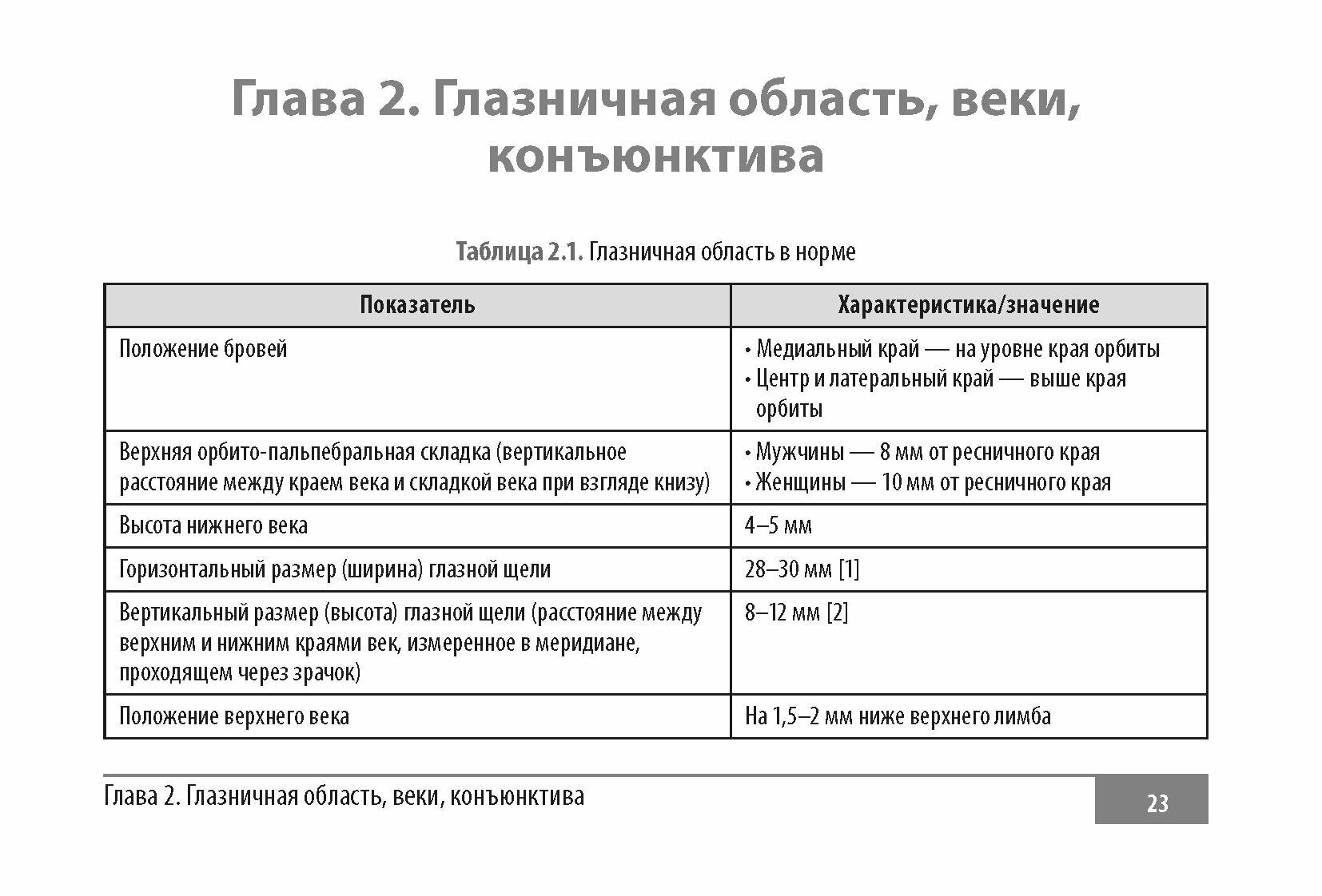 Особое внимание уделяется оценке основных показателей структур глаза при помощи современных информативных методов исследований. Приведены основы физиологической оптики, возрастные особен- ности динамики рефракции и аккомодации, нормативы значений внутриглазного давления и показателей глазной гидродинамики. Отдельный акцент сделан на нормальном развитии функций органа зрения, диа- гностических возможностях современных методов исследования функций зрительного анализатора и их пра- вильной интерпретации. Материал систематизирован и изложен в краткой и иллюстративной форме.