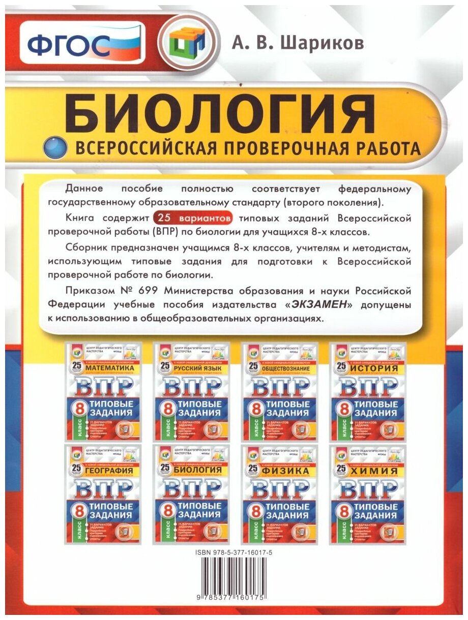 Сборник предназначен учащимся 8-х классов, учителям и методистам, использующим типовые задания для подготовки к Всероссийской проверочной работе по биологии.