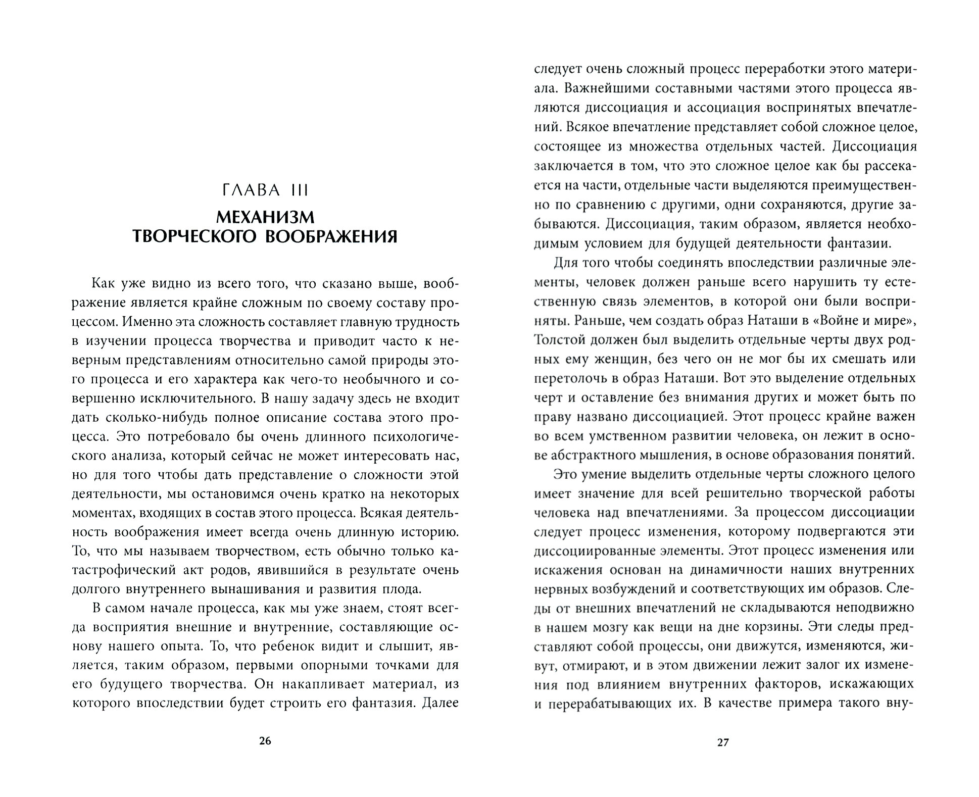 В книге выдающегося российского учёного Л. С. Выготского "Воображение и творчество в детском возрасте" рассматриваются вопросы творческого воображения, основы и механизмы его развития в детском возрасте. Есть также приложение и список трудов Выготского Л. С. Само издание из серии "Психология ребёнка" от издательства "Перспектива", СПб, 2020, рекомендовано психологам, педагогам, родителям и студентам.