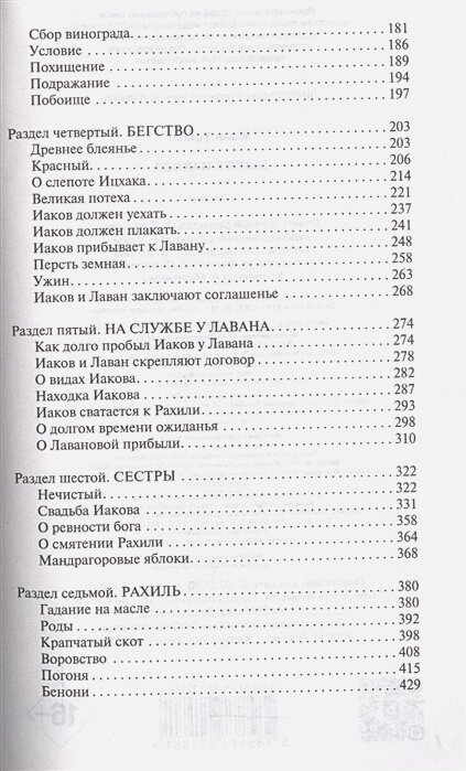 Эпопею открывает подробнейший рассказ о непростой судьбе Иакова. Украв первородство и отцовское благословение у брата Исава, он становится изгнанником в родных краях и находит приют в доме своего дяди Лавана. Здесь Иакову предстоит с честью пройти уготовленные испытания, познав как радости, так и горести: встретить любовь своей жизни Рахиль, служить за нее долгих семь лет, по воле случая взять в жены ее сестру, родить двенадцать сыновей, одному из которых – Иосифу – суждено будет занять особое место в библейской истории…