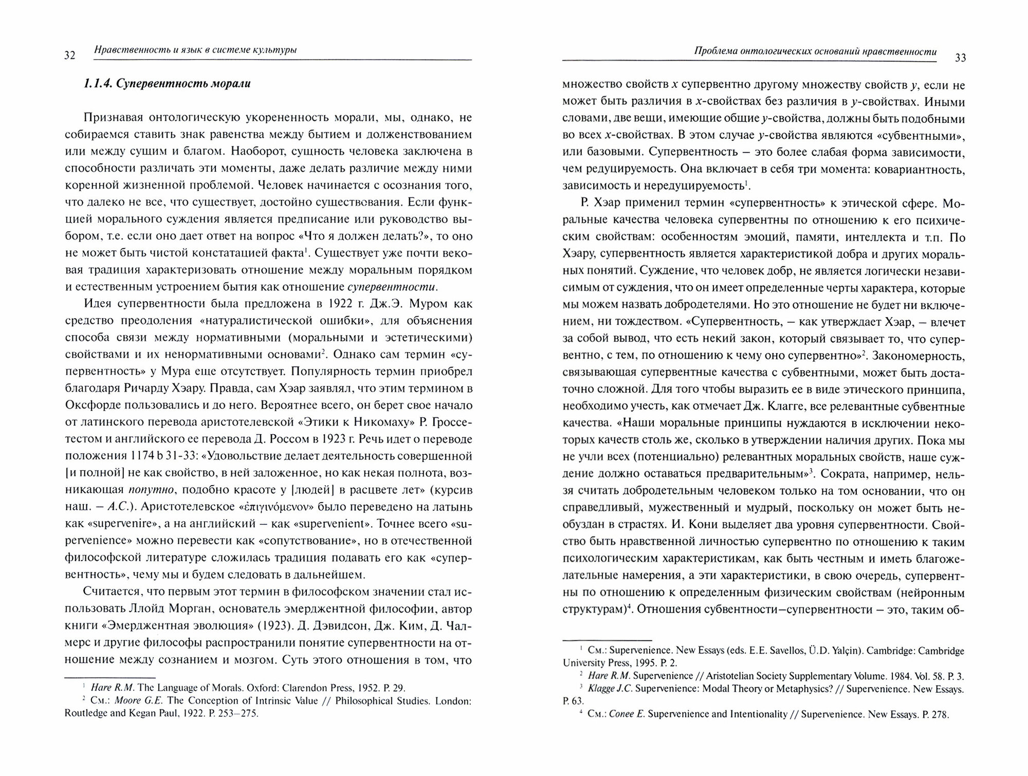 В данной монографии мораль рассмотрена как продукт онтологических тенденций к объединению отдельных систем и их автономии. Содержание морали конструируется в синтезе языковых и неязыковых аспектов. Решающая роль в формировании морали принадлежит языку. Язык как знаковая система лежит в основе свободы воли - способности активно вмешиваться в ход природных и ментальных процессов. На языковом материале строится нормативная детерминация, которая превращает человека в ответственного морального субъекта. Лингвистические тропы - метонимия и метафора - позволяют устанавливать искусственную связь между различными сторонами бытия и особый порядок отношений между людьми ("этос"). Центральной метафорой, заложенной в фундамент морали, является "золотая середина" между избытком и недостатком. Моральный порядок складывается в диалоге между людьми и обосновывается различными нарративами, которые координируются друг с другом и связывают отдельные жизненные эпизоды в относительно цельную систему. Формирование нормативного порядка (этогенез") является процессом интеграции поведенческих стратегий и механизмов в сложную сеть, исходными узлами которой выступают негодование, вина, чувство собственного достоинства и любовь. Нравственному значению любви в монографии отведено особое место. Условием успешного включения в нормативный порядок служит этическая герменевтика. Искусство понимания интенций и резонов другого или третьего лица является практической реализацией толерантности. Аморальность ("нравственный идиотизм") представляет собой разрыв моральной сети, ослабление или гипертрофию ее отдельных звеньев.