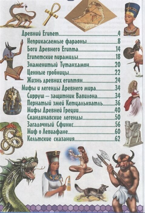«Древний мир. Мифы и легенды» – это книга про загадочный Древний Египет с фараонами и пирамидами, про героев и сказочных существ из мифов Древнего мира. На страницах нашей энциклопедии вы узнаете, как возникла цивилизация древних египтян, кто построил первую пирамиду, что нашли в гробнице фараона Тутанхамона, а также познакомитесь с грозным Сиррушем – защитником Вавилона, пернатым змеем Кетцалькоатлем, жестоким Минотавром, страшным волком Фенриром и с мудрым магом Мерлином.