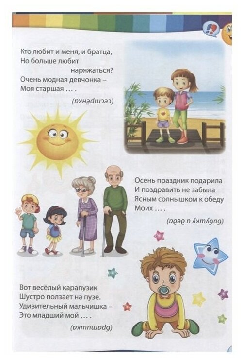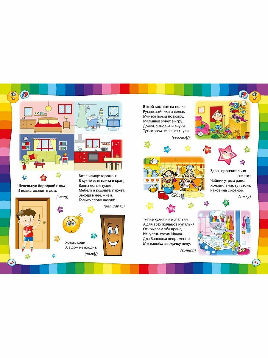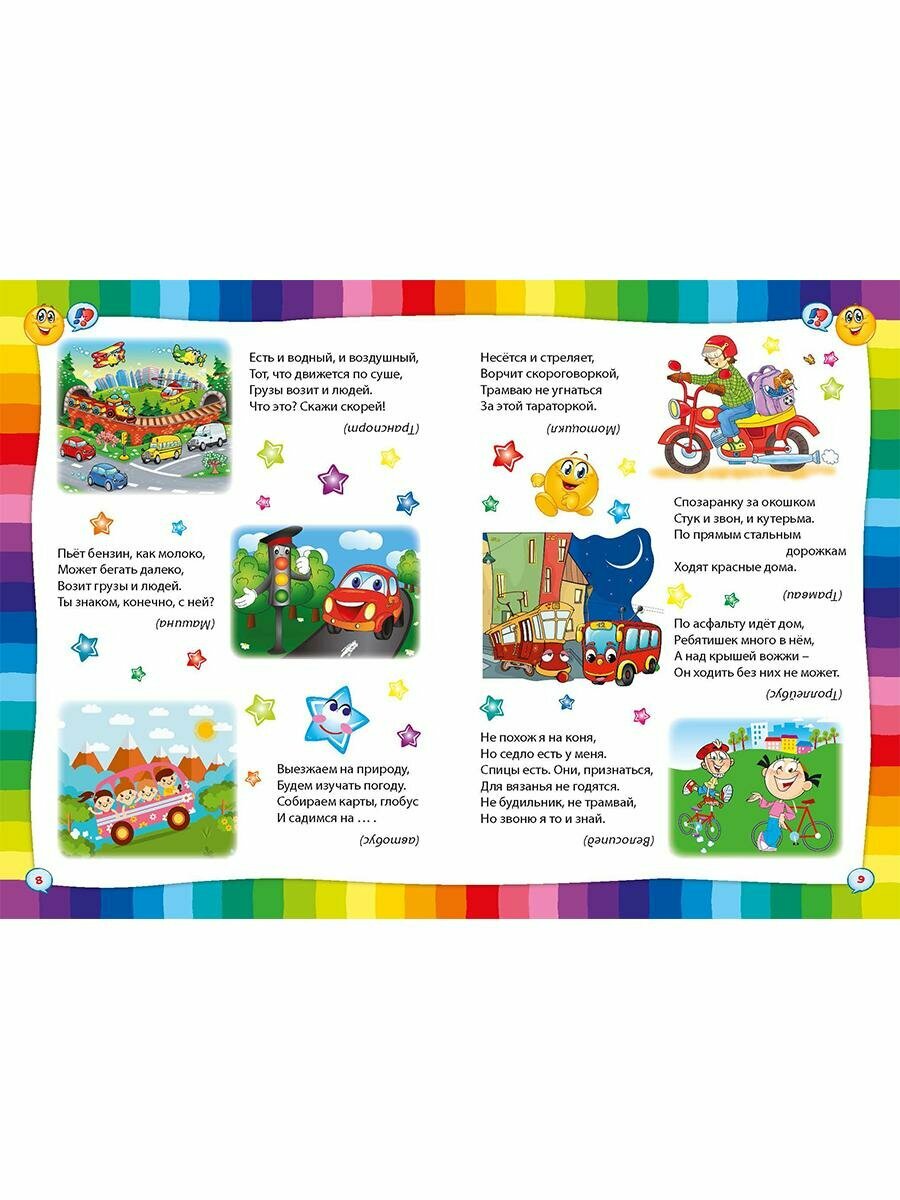 В нашей красочной книге вы найдёте самые разные загадки: про семью и дом, про профессии, транспорт и окружающий мир.