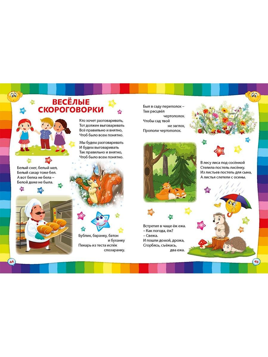 Всем известно, что скороговорки для детей - это стихи для развития речи и дикции. В нашей книжке мы подобрали весёлые скороговорки для развития вашего малыша, которые можно попробовать выучить наизусть и произносить без запинки.
