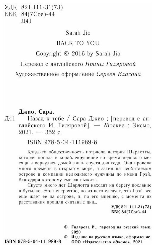 Книга: Назад к тебе (Джио Сара); ООО "Издательство "Эксмо", 2020