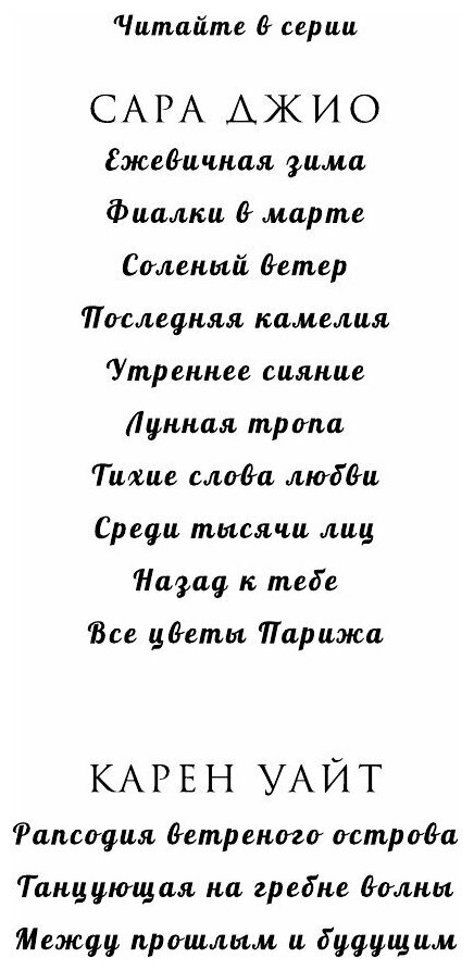 | Серия | Зарубежный романтический бестселлер. Романы Сары Джио и Карен Уайт (обложка) |