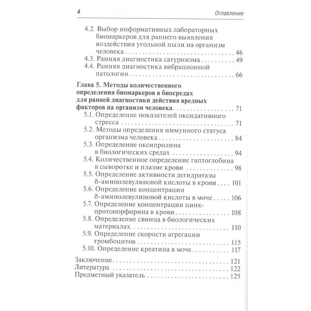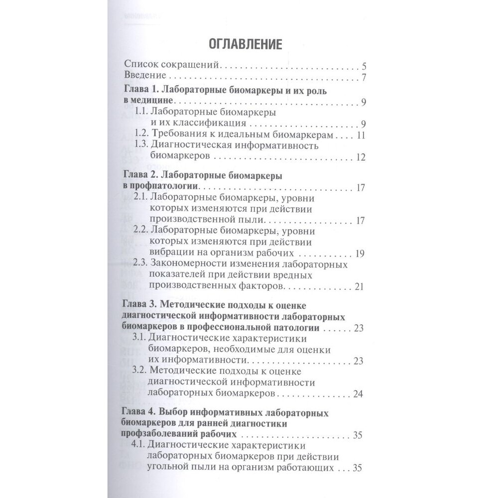 В руководстве представлена методология изучения диагностических характеристик биомаркеров, разработанная на основании закономерностей изменения их уровней. Предложена методика выбора наиболее информативных лабораторных биомаркеров и разработки их комплексов для ранней диагностики вредного профессионального воздействия. Установлены диагностические характеристики лабораторных маркеров при воздействии производственной пыли, физических и химических вредных факторов на организм рабочих, контактирующих с вредными производственными факторами.