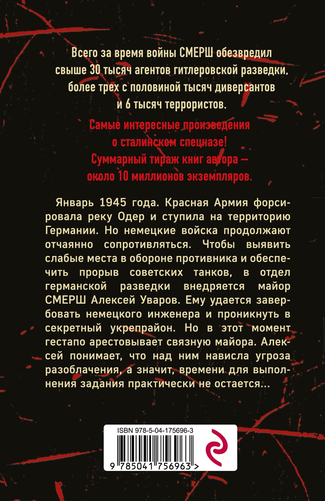 Январь 1945 года. Красная Армия форсировала реку Одер и ступила на территорию Германии. Но немецкие войска продолжают отчаянно сопротивляться. Чтобы выявить слабые места в обороне противника и обеспечить прорыв советских танков, в отдел германской разведки внедряется майор СМЕРШа Алексей Уваров. Ему удается завербовать немецкого инженера и проникнуть в секретный укрепрайон. Но в этот момент гестапо арестовывает связную майора. Алексей понимает, что над ним нависла угроза разоблачения, а значит, времени для выполнения задания практически не остается…