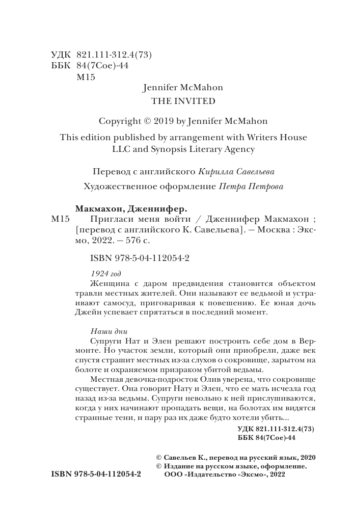 Книга: Пригласи меня войти (Дженнифер Макмахон); Эксмо, Редакция 1, 2022