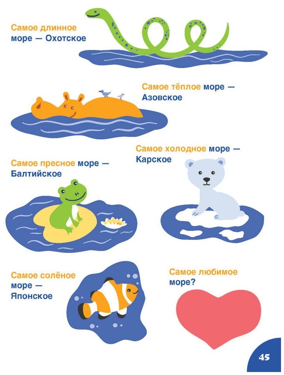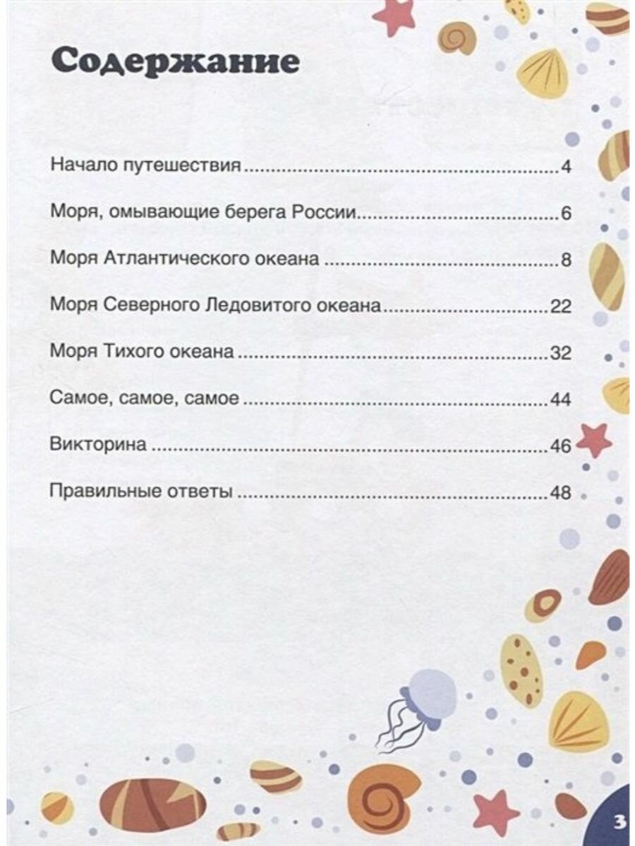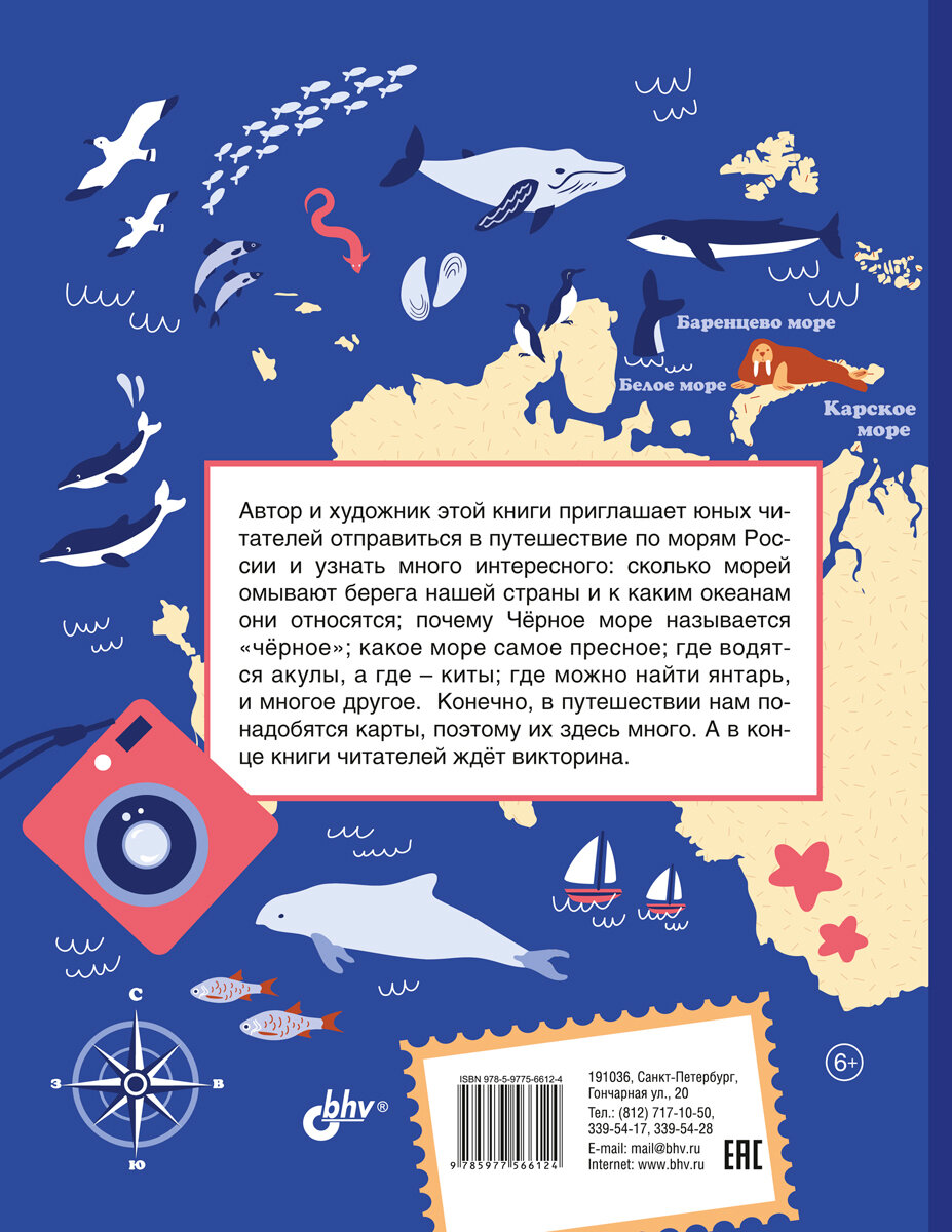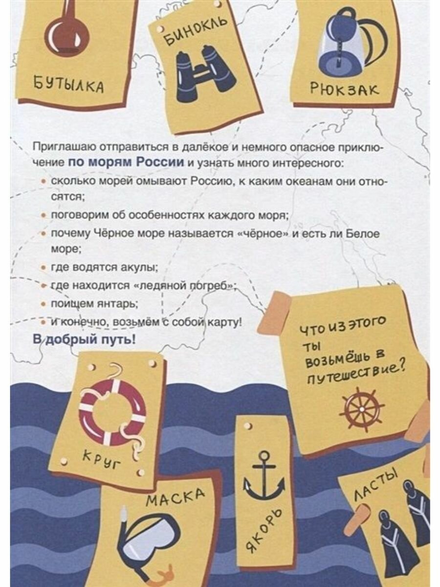 Эта книга приглашает юных читателей отправиться в путешествие по морям России и узнать много интересного: сколько морей омывают берега нашей страны и к каким океанам они относятся; почему Чёрное море называется «чёрное»; какое море самое пресное; где водятся акулы, а где — киты; где можно найти янтарь, и многое другое. В конце книги читателей ждёт викторина.