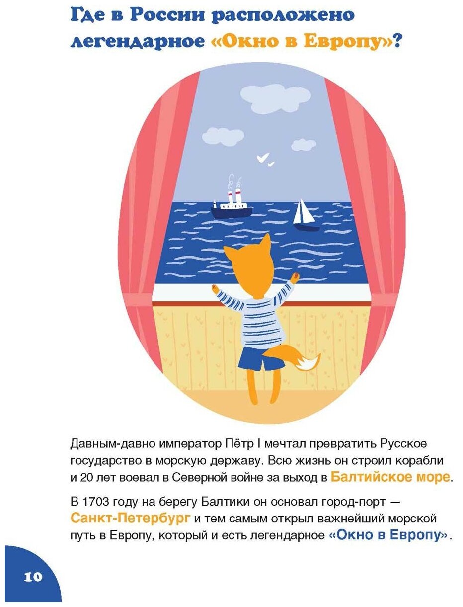 Нам с сыном 6 лет книга очень даже зашла. Текста познавательного в самый раз, чтобы не потерял внимание. Картинки интересные, факты, о которых и сама не знала, хотелось дальше перелистывать и поскорее узнать еще что-то новое и необычное про нашу родину. Удобный формат, что можно и с собой куда-то взять почитать и для подарка подойдет. Нарядная, яркая, информативная. Советую!