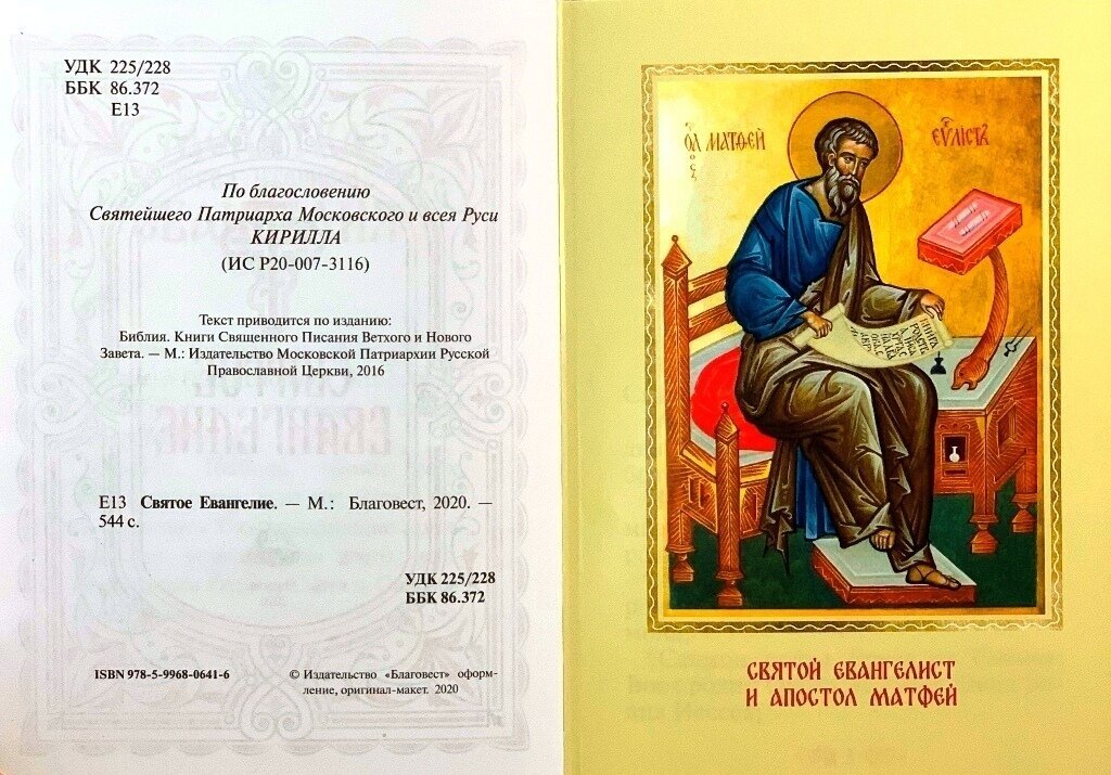 Святое Евангелие крупным шрифтом с выделением слов Спасителя красным цветом, что является удобным решением для восприятия священного текста. Издание среднего формата с закладкой напечатано на русском языке, содержит церковные зачала и цветные вклейки на мелованной бумаге с изображениями Евангелистов. Использован твердый переплет с тиснением золотой фольгой, качественная офсетная бумага.