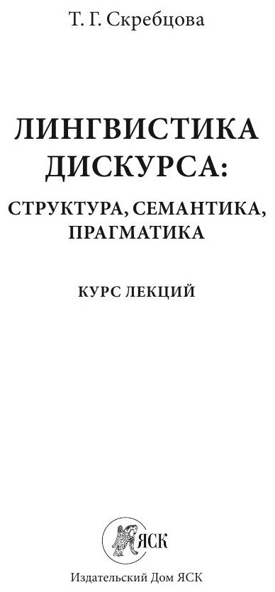 Лингвистика дискурса. Структура семантика прагматика. Курс лекций (Т. Г. Скребцова); Языки Славянской Культуры, 2020