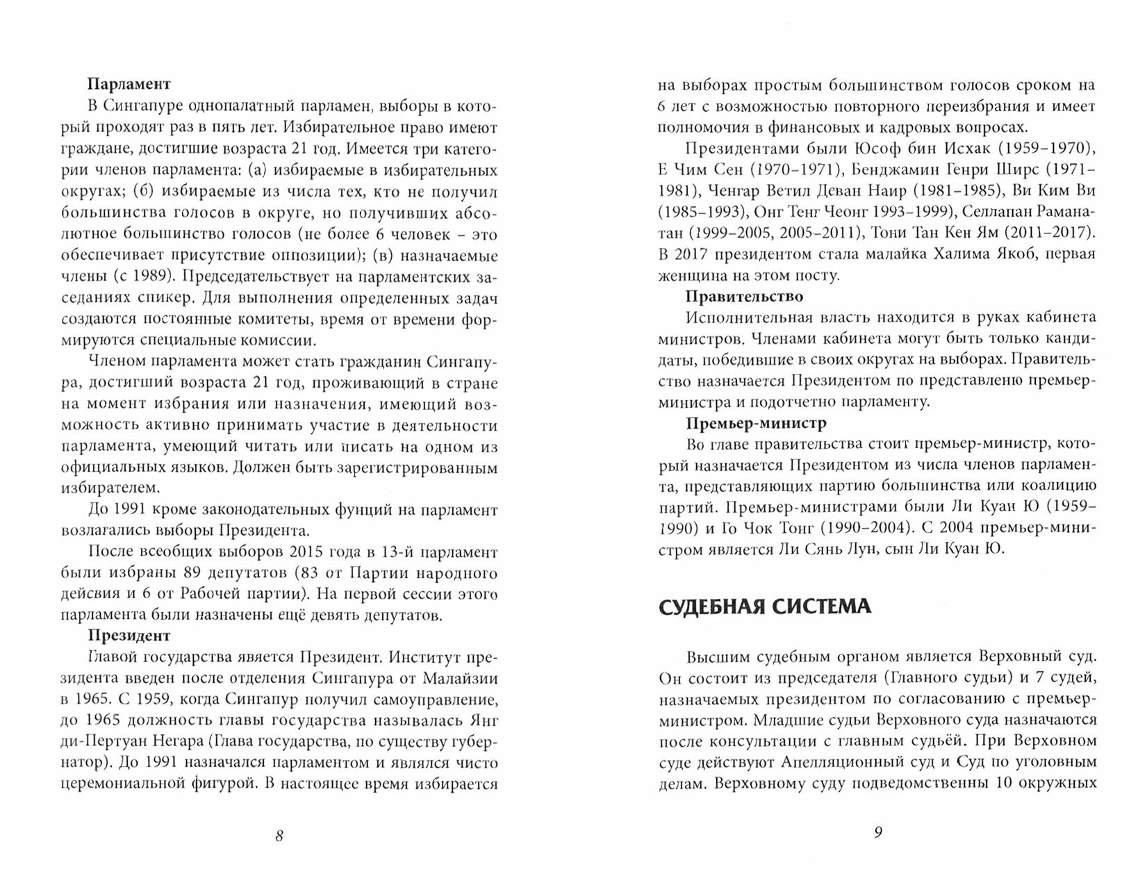 Карманная энциклопедия содержит основные сведения по географии, государственному устройству, административно-территориальному делению, экономике, истории, культуре, литературе Сингапура, полезные советы путешественникам, включает тематический словарь. Это четвертая книга, вышедшая в серии кратких справочников Центра изучения проблем ЮВА и АТР ИСАА МГУ в дополнение к справочникам по Брунею, Индонезии и Малайзии.
