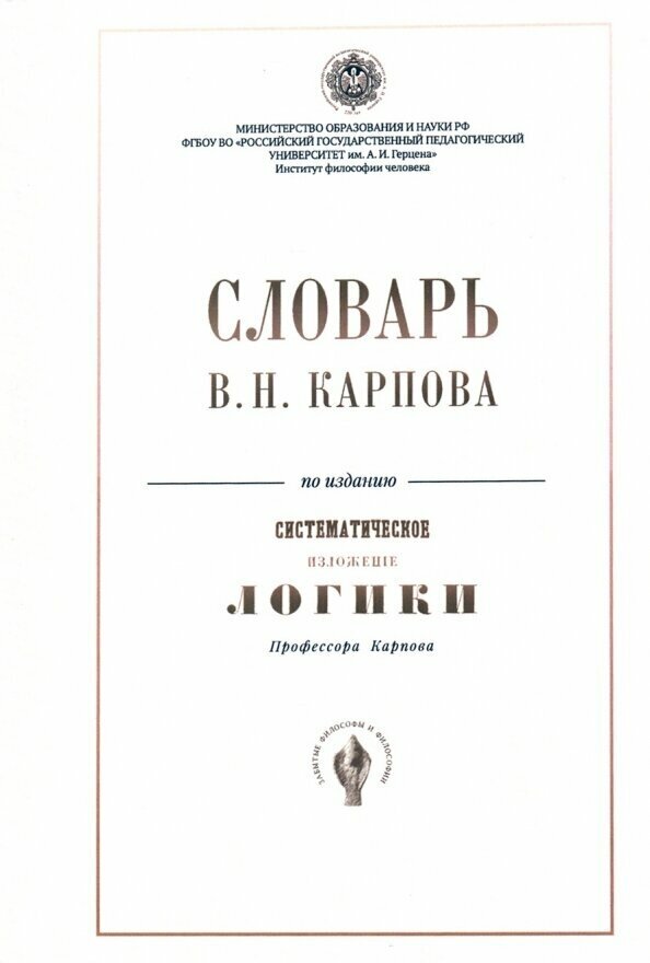 Словарь В.Н. Карпова по изданию "Систематическое изложение логики" (Шевцов А., Соколова Н. (сост.)); Роща, 2020