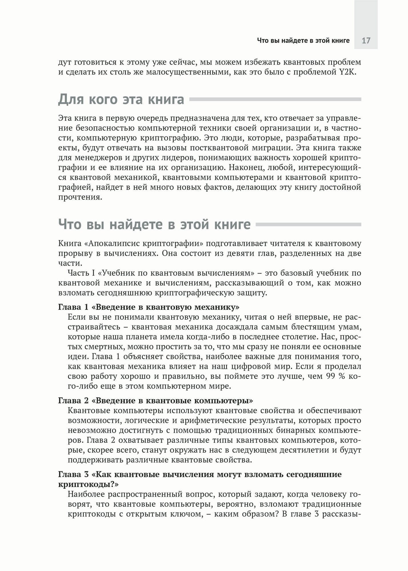 Автор, известный специалист по компьютерной безопасности, показывает, какие приложения могут оказаться самыми уязвимыми перед квантовыми вычислениями, как лучше использовать современные технологии шифрования и как внедрить новую постквантовую криптографию для обеспечения безопасности пользователей, данных и инфраструктуры.