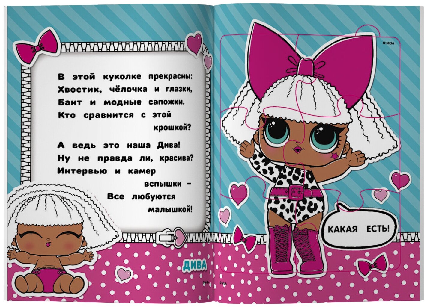 Давай играть и веселиться вместе с куколками L.O.L. Surprise! Яркие иллюстрации, забавные стихи и пазлы с крупными деталями обязательно понравятся малышам, также помогут развить мелкую моторику, наблюдательность и память.