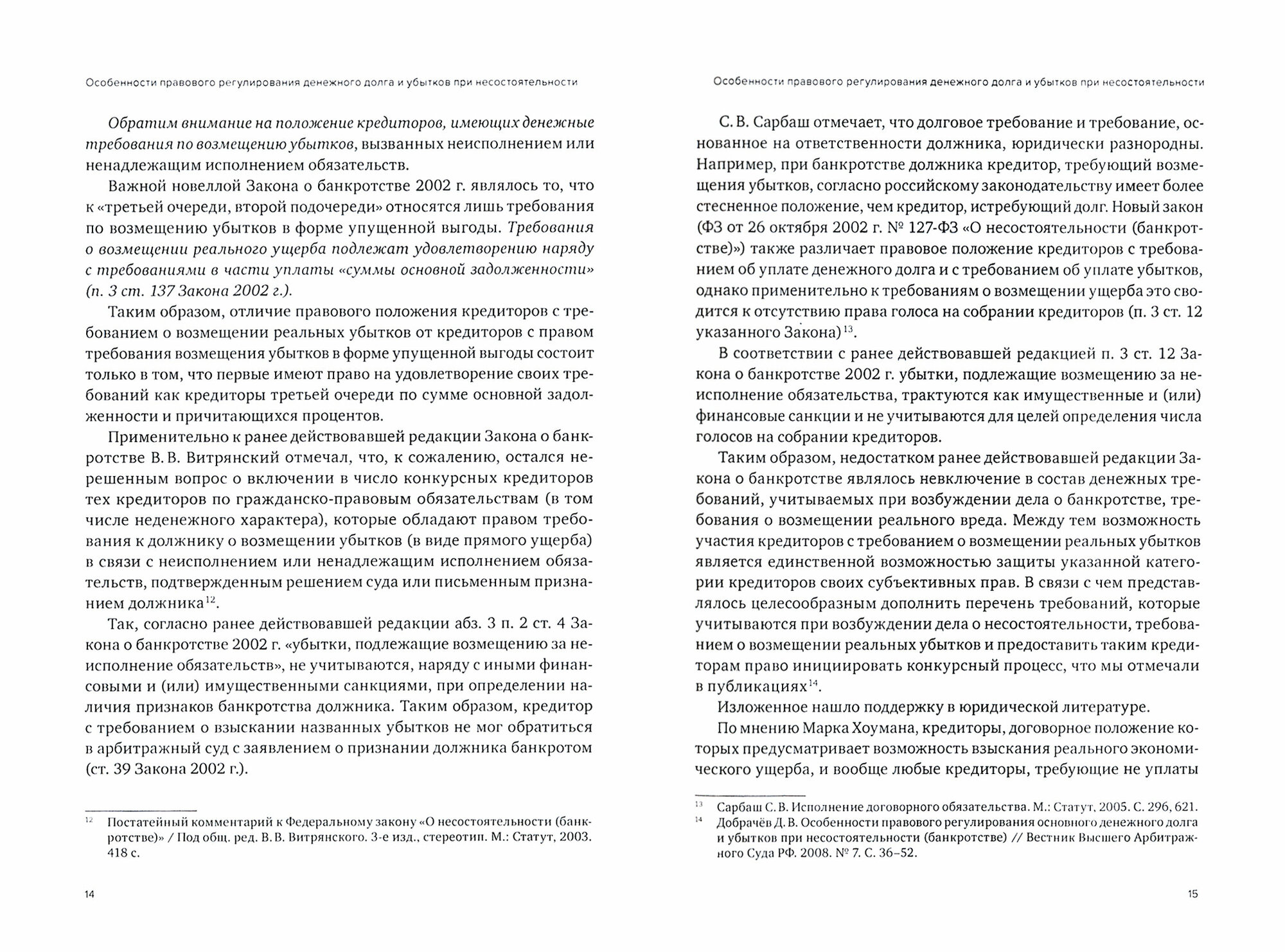 В книге даётся комментарий к общим принципам привлечения контролирующих должника лиц (КДЛ) к субсидиарной ответственности при банкротстве; проводиться анализ эволюции судебной практики по данным делам и правового положения КДЛ; рассматриваются особенности оспаривания подозрительных сделок, описываются особенности судебной защиты выплаты действительной стоимости доли кредиторов-учредителей; анализируются вопросы взыскания неустойки и мораторных процентов по требованиям залоговых кредиторов в процедуре несостоятельности (банкротства). Широко представлена судебная практика КС РФ, ВС РФ и окружных судов.