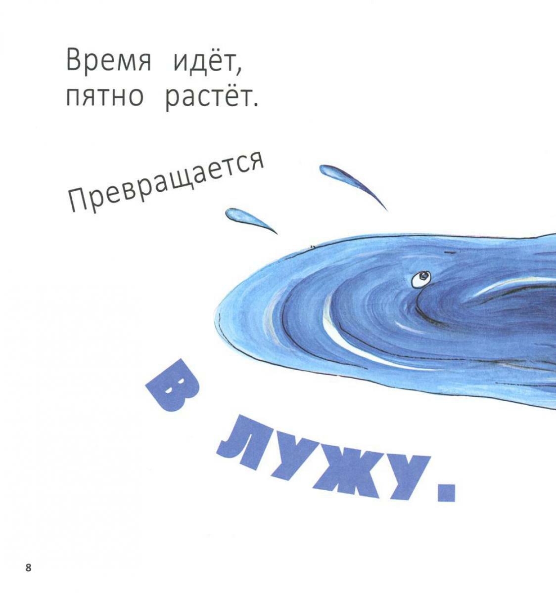 - Вместе с книгой ребёнок сможет рассматривать картинки, изучать разные величины, сравнивать, что больше, что меньше, и, конечно, повеселиться, когда, к примеру, из лужи выпрыгнет кит.