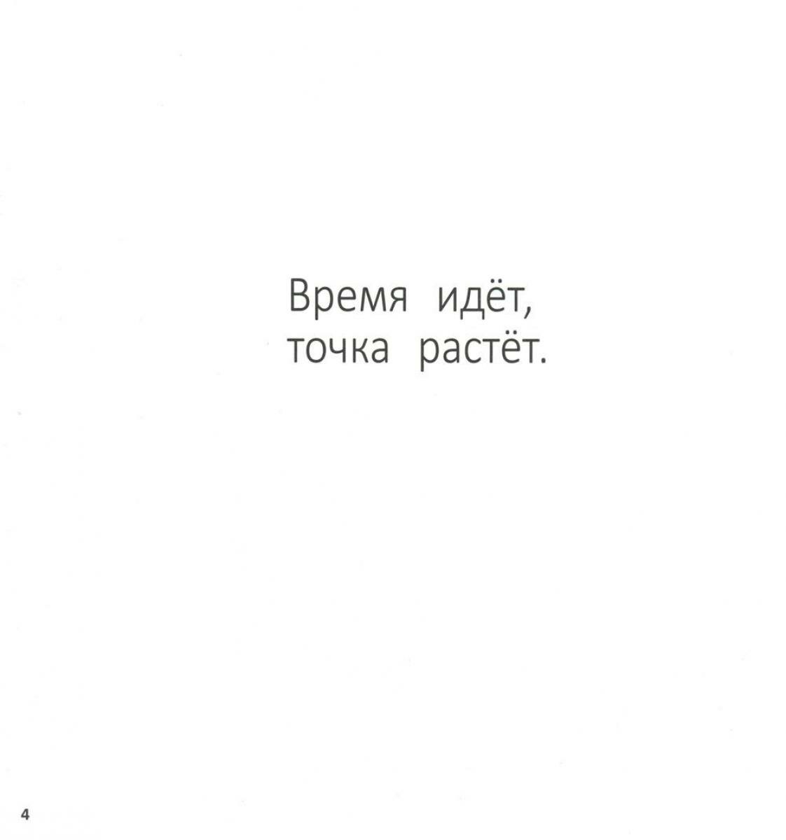 Книга Ксении Горбуновой "Точка растёт" - про самое простое, что может быть на свете: про маленькую точку! Точка в книге живая, она растёт, становится лужей, морем, океаном с островом, который превращается в большую страну, а потом и в целый земной шар. Но самое интересное случается в конце. Земной шар улетает "вперед-вперед, в неведомое" и превращается… снова в точку.