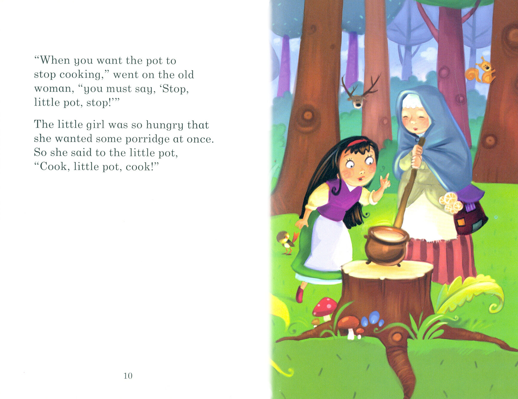 The Magic Porridge Pot is a Level 1 Read it yourself title, suitable for very early readers who have had some initial reading instruction and are ready to take their first steps in reading real stories. Each story is told very simply, using a small number of frequently repeated words.