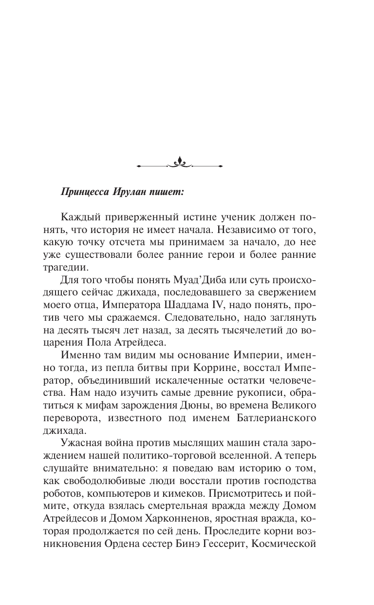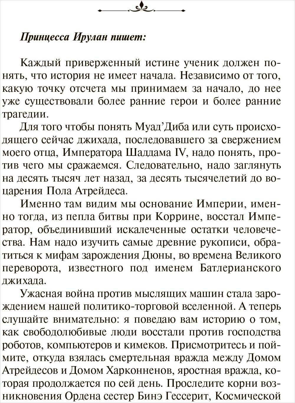 Несмотря на непрекращающуюся кровопролитную борьбу, остались те, кто продолжает сопротивляться. В рядах униженного, но не сломленного человечества зреет восстание, которое выльется в непримиримый Батлерианский джихад – Великий переворот, изменивший ход истории Арракиса и всей Вселенной.