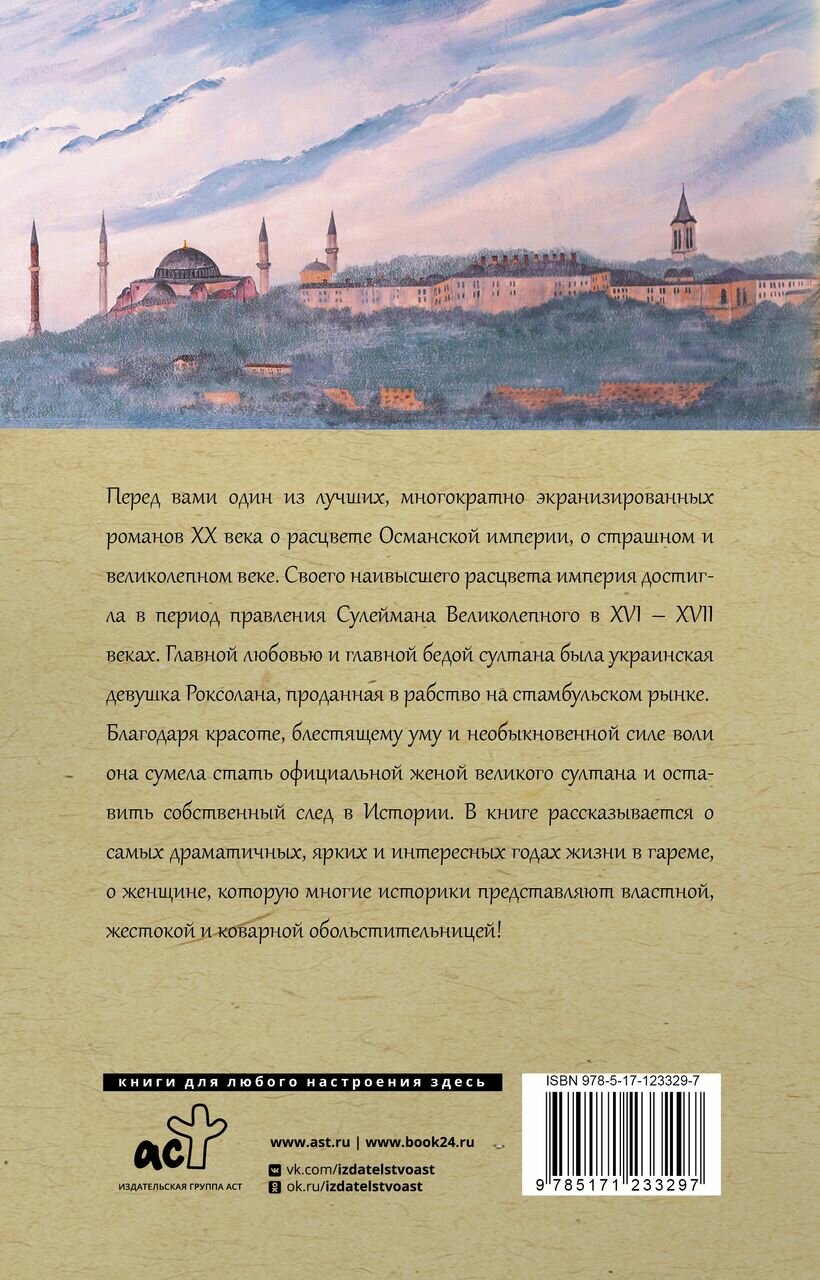 Перед вами один из лучших, многократно экранизированных романов ХХ века о расцвете Османской империи, о страшном и великолепном веке. Своего наивысшего расцвета империя достигла в период правления Сулеймана Великолепного в XVI - XVII веках. Главной любовью и главной бедой султана была украинская девушка Роксолана, проданная в рабство на стамбульском рынке.