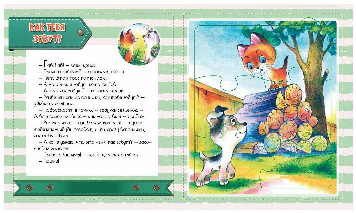 В этой книге вы найдете не только известную и любимую многими поколениями родителей историю Г. Остера про Котенка Гава "Как тебя зовут?", но также яркие иллюстрации, пазл из 6 частей на каждой странице для развития мелкой моторики и внимания, удобный замочек с ручкой, благодаря которым книгу будет удобно взять с собой в дорогу и поиграть с ребенком.