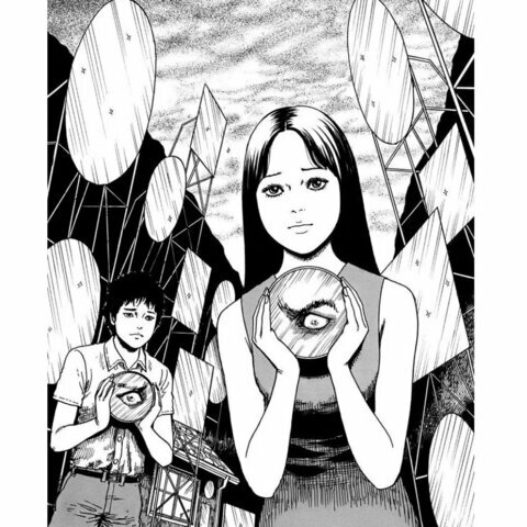 Так вот данный мангака Дзюндзи Ито - мастер боди-хоррора. Важных для него персонажей он детально рисует, ну а если его персонаж начинается проще рисоваться, особенно очертания лица, то знайте - его ждет ужасная участь. Если для нас существует Лавкрафт и Кинг, то из мира Японии - это Дзюндзи Ито)))